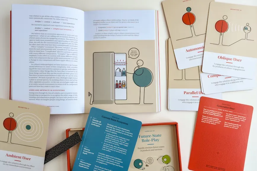 Libro: Rethinking users, cartas de arquetipos y cartas de ejercicios.